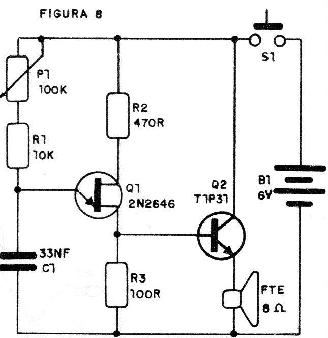 Uma versão de oscilador com unijunção pode ser montada conforme o diagrama da figura 8.