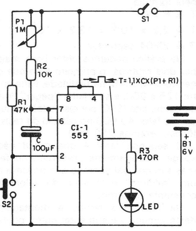 Este tempo pode ser ajustado pela variação de P1, um potenciômetro que pode ser calibrado em termos de tempo.