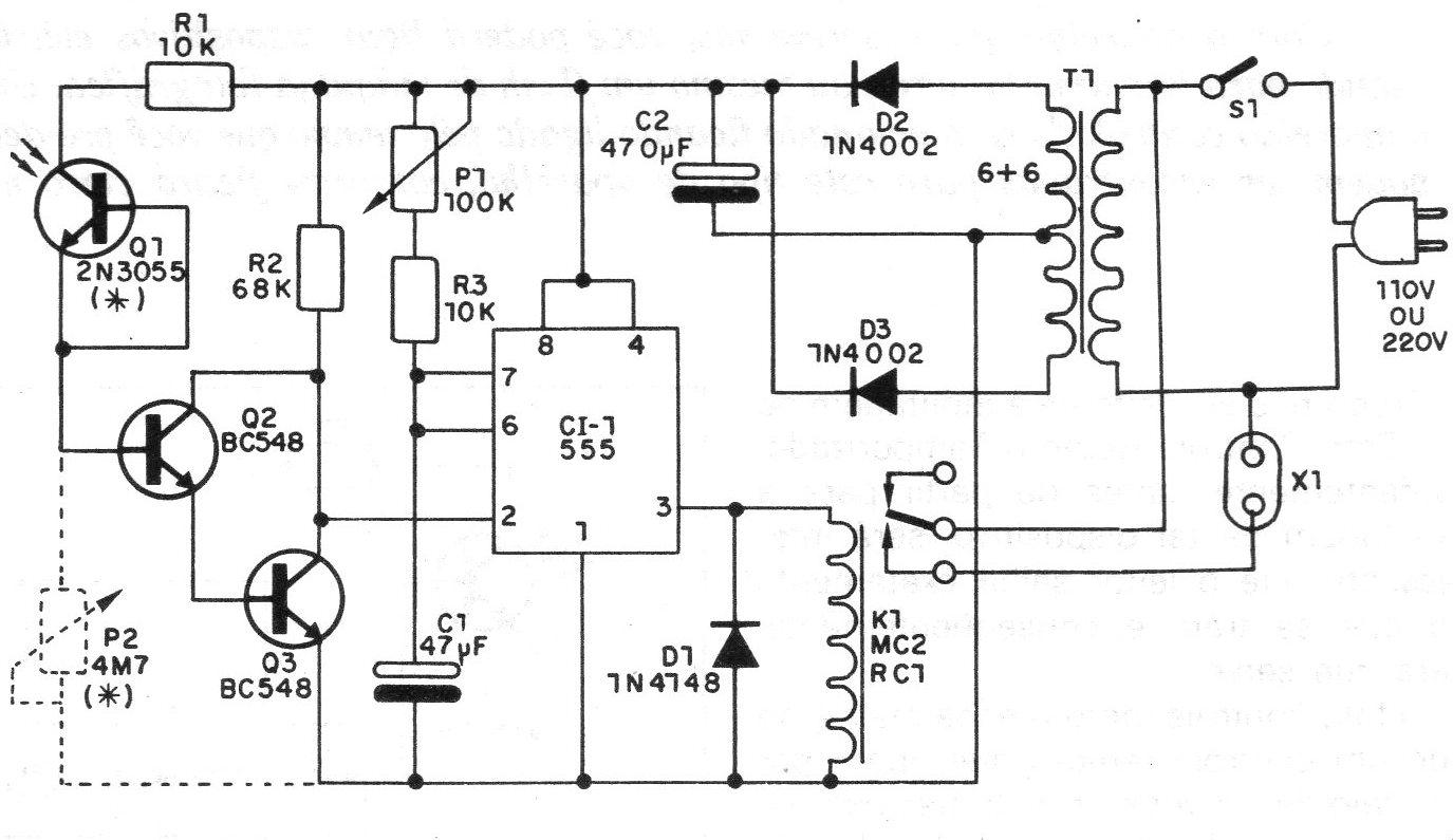 O foto-controle remoto temporizado é muito simples de montar e funciona na rede de 110 V e 220 V, controlando aparelhos que tenham potências na faixa de 220 watts (110 V) até 440 watts (rede de 220 V).