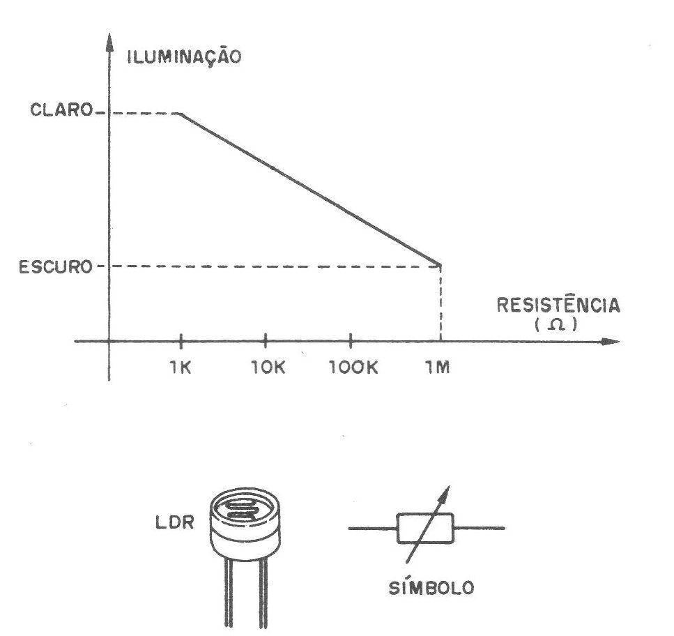 No escuro, a resistência do LDR é muito alta e no claro sua resistência muito baixa.