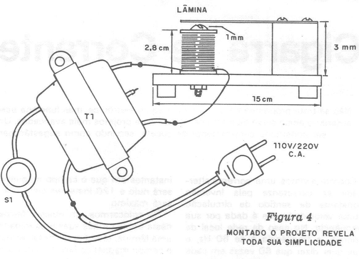 Não se trata propriamente de uma montagem eletrônica, mas funciona baseada totalmente no que foi visto no nosso Curso de Eletrônica – Eletrônica Básica – lição sobre magnetismo e ainda serve de ponto de partida para projetos mais avançados. Uma cigarra de corrente alternada que pode ser construída com material de sucata, servindo como sugestão para excelente trabalho experimental.