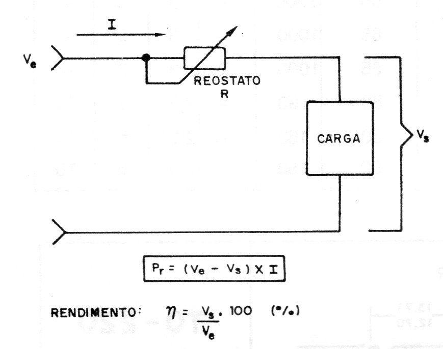 Comparativamente, para manter a partir de 20 Volts de entrada uma tensão de 10 V na carga, com um sistema convencional (tipo reostato), a potência dissipada seria de 10 watts.