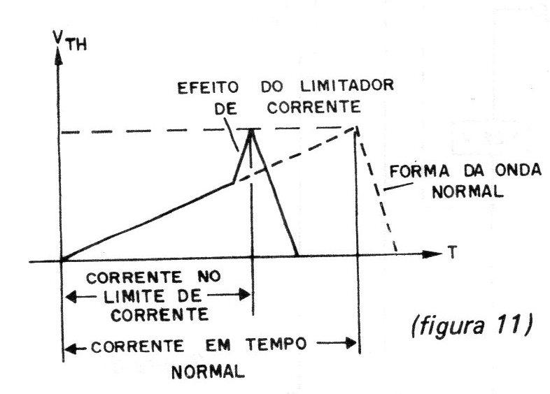 O efeito disto é a redução do tempo em que o transistor conduz a corrente, assim como a energia desenvolvida no indutor. A figura 11 mostra o que ocorre durante a atuação do limitador de corrente.