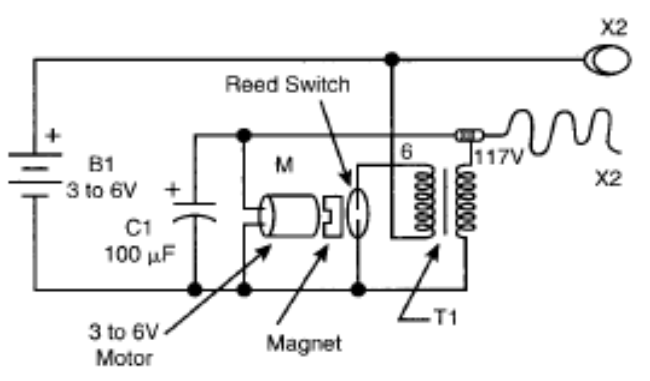 A Figura 8 mostra como um ímã preso ao eixo de um motor pode acionar uma chave reed, abrindo e fechando o circuito e gerando altas tensões no transformador.