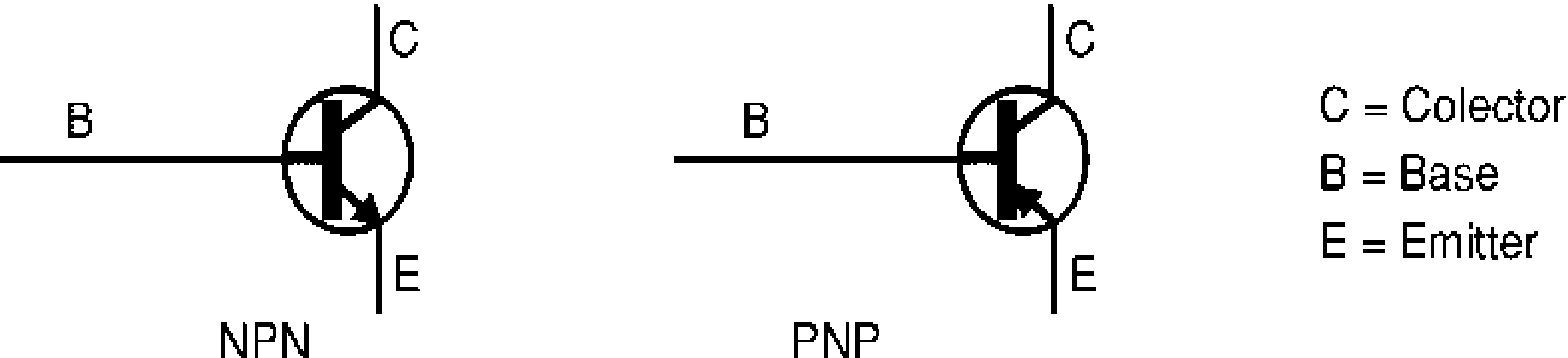 Existem dois tipos de transistores bipolares, categorizados de acordo com a estrutura interna do material semicondutor do qual eles são fabricados, conforme mostrado na Figura 1. A diferença básica entre os dois tipos é a direção do fluxo de corrente enquanto eles estão funcionando. Como mostrado na Figura 1, o transistor NPN conduz uma grande corrente entre o coletor e o emissor quando a base é positiva em relação ao emissor.