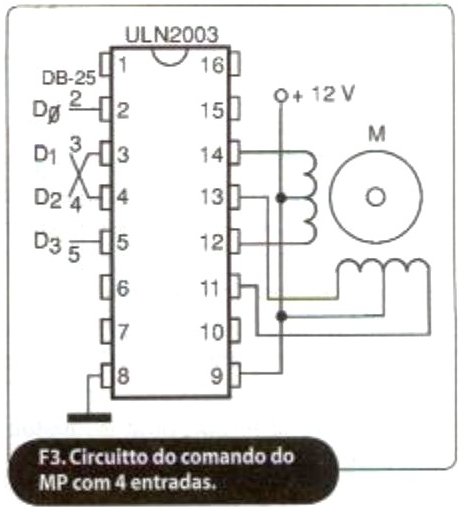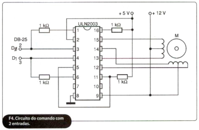 Assim, as bobinas são energizadas com a seguinte sequência de comandos de entrada que podem vir direta- mente da porta paralela de um PC ou de lógica digital TTL (ou CMOS).