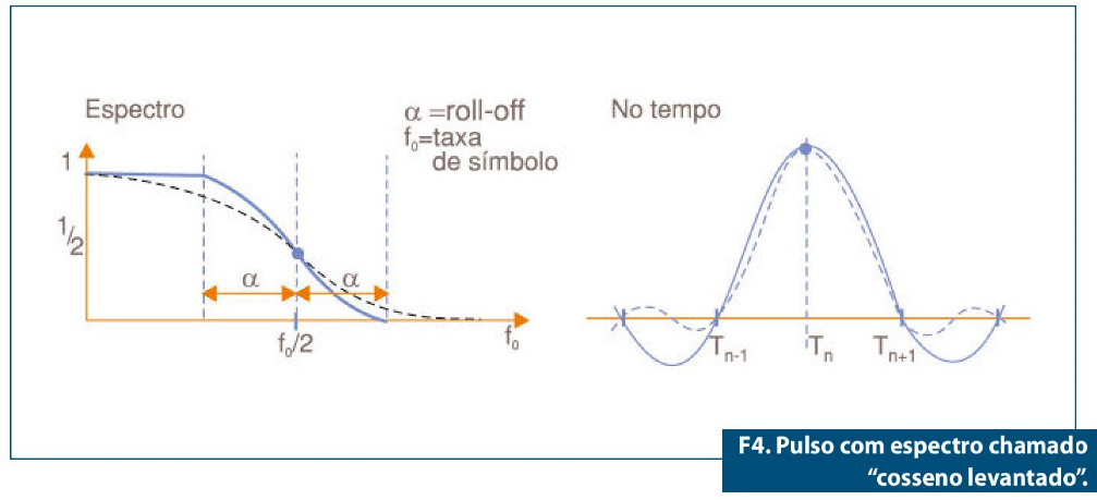 Vários tipos de pulsos seguem esta regra, porém, para minimizar os problemas de jitter são escolhidos pulsos que possuem um rápido decaimento da amplitude no tempo, sendo na prática utilizado o pulso cujo espectro é comumente chamado de "cosseno levantado" (figura 4).