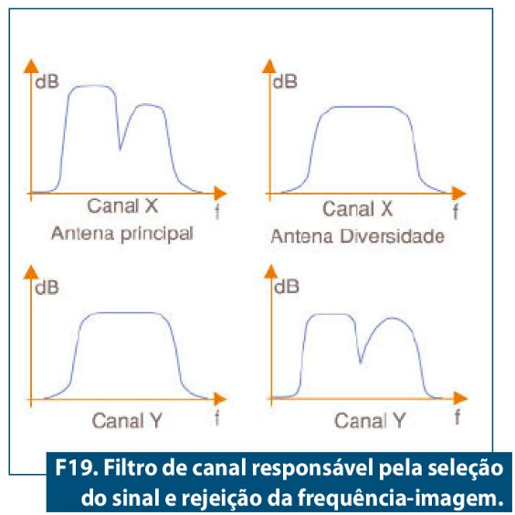 Este filtro determina a frequência do sinal a ser processado pelo receptor. Conforme a figura 19, o mesmo também permite que se selecione o sinal correto a partir do sinal combinado recebido pela antena. Este filtro também é responsável pela rejeição da frequência imagem.