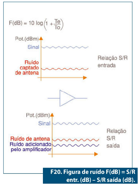 A Figura de Ruído expressa a degradação da relação sinal/ruído da entrada para a saída do amplificador quando a temperatura de ruído do sinal de entrada é To (290 K). (Figura 20).
