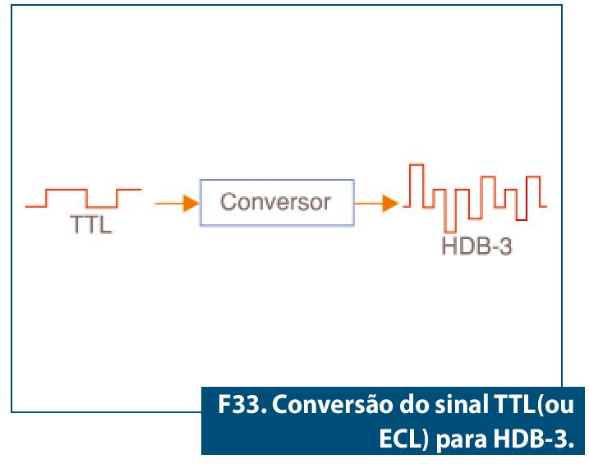 Finalmente, o feixe de bits recebido é convertido do nível lógico interno (TLL ou ECL) para o padrão ITU G.703 na interface de saída do rádio. Veja a figura 33.