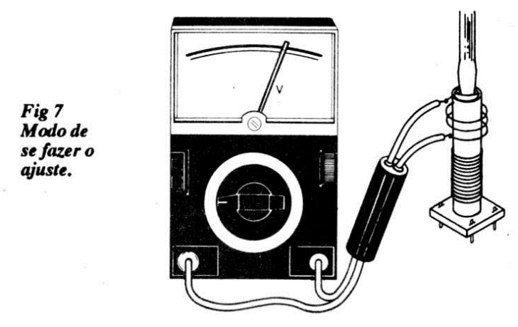 Para o ajuste podemos usar um medidor de intensidade de campo improvisado com alguns componentes e a escala de volts do multímetro, conforme mostra a figura 6.