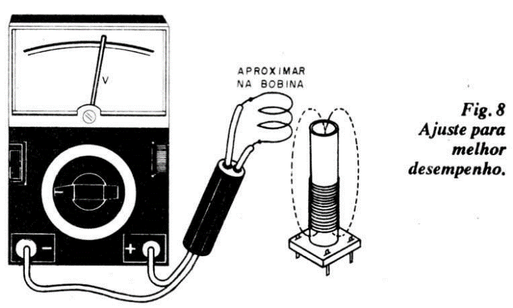 Afastando depois o elo um pouco da bobina de modo a obter mais sensibilidade, os ajustes podem ser repetidos para alcançar um máximo de desempenho do aparelho.