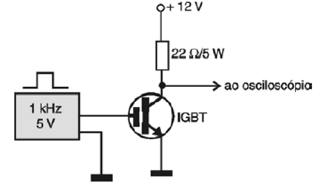 A carga pode ser um resistor de fio com o valor indicado no esquema. Esse procedimento permite observar a velocidade de comutação do IGBT, com uma forma de onda conforme a mostrada na figura 5.