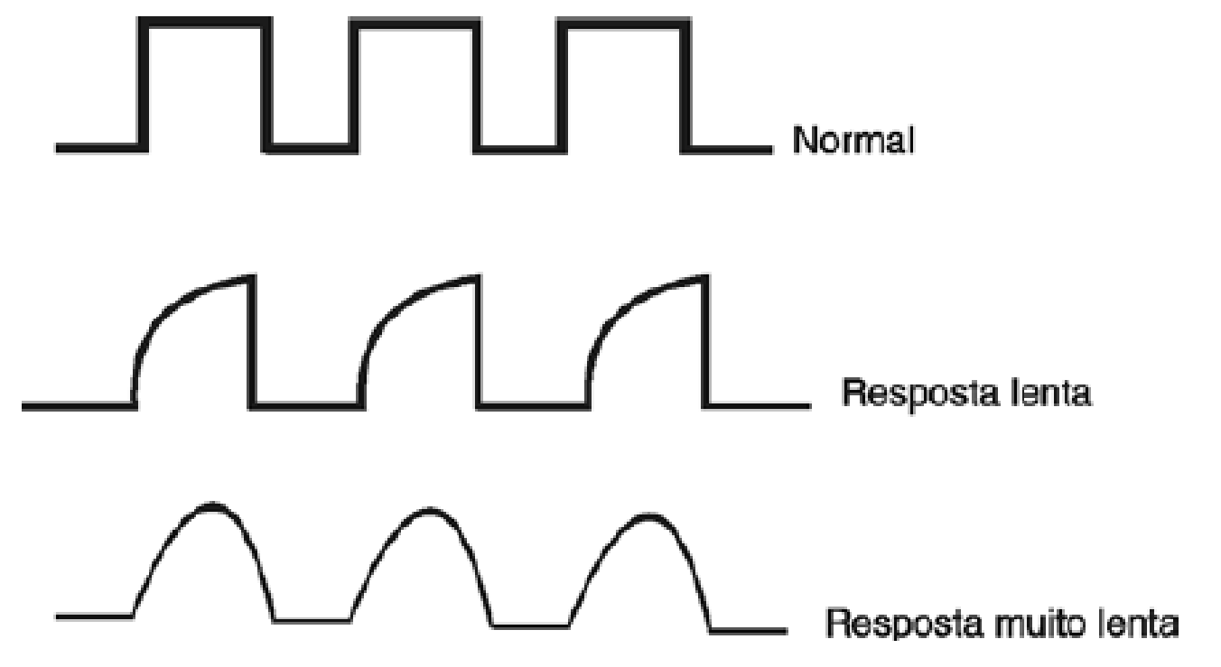 Uma avaliação sobre o desempenho do componente em velocidades maiores pode ser feita ajustando-se o gerador de funções para produzir sinais de 10 kHz até mais de 100 kHz.