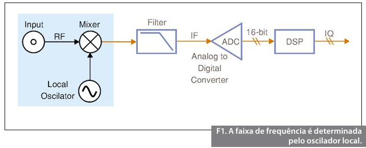 A faixa de frequência é, sem dúvida, a mais importante característica dos instrumentos de RF. Por exemplo, uma solução de teste WiFi requer operação em frequências acima de 2,5 GHz. Similarmente, ao realizar a análise de um componente que opera em 900 MHz, o instrumento deve operar nesta faixa de frequência para ser útil. Uma variedade de componentes pode afetar a máxima faixa de frequência de um instrumento de RF, incluindo mixers, filtros de entrada e osciladores locais (OLs). No entanto, a configuração do instrumento para funcionar em uma frequência específica é realizada principalmente pelo ajuste do OL. Alguns instrumentos usam uma série de múltiplos OLs, mas o diagrama de blocos simplificado do instrumento mostrado na figura 1 utiliza um único OL.