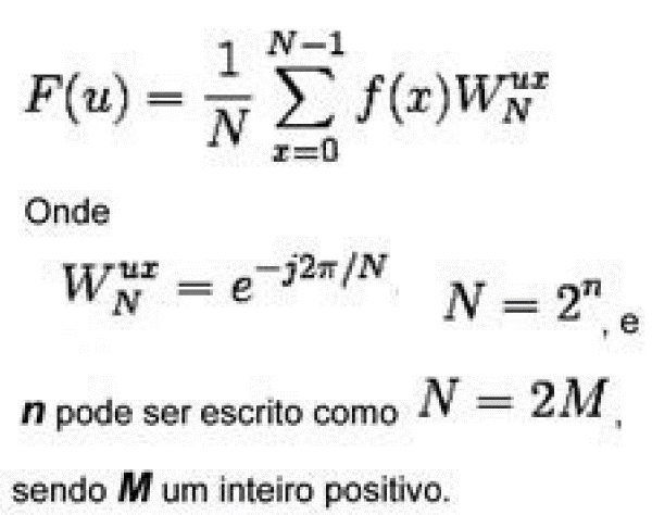 A Transformada Discreta de Fourier (DFT) é aplicada para sinais discretos no tempo (dados coletados por um conversor analógico- digital, por exemplo).