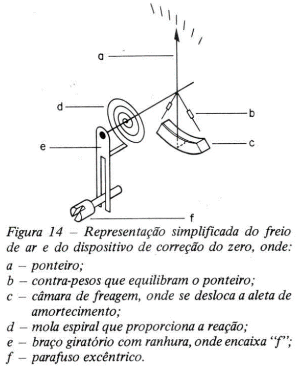 Deste modo o ponteiro pode ser compensado. Faz-se esta operação durante a fabricação do aparelho, ajustando-se os pesos até que o ponteiro fique perfeitamente equilibrado em todas as direções.
