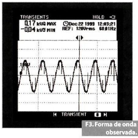 Foi na visita à oficina que o problema foi localizado. A suspeita estava numa máquina de retifica usada para fazer a recuperação (retificação) de discos de freios. Essa máquina era alimentada por DC e utilizava um motor com controle de velocidade ajustável. Conectando o Analisador de Qualidade de Energia Fluke 43B à entrada de energia do estabelecimento, ele programou-o para fazer a captura de transientes. O resultado foi que esse instrumento registrou picos de transientes elevados justamente quando esta máquina entrava em operação, conforme ilustra a figura 3.