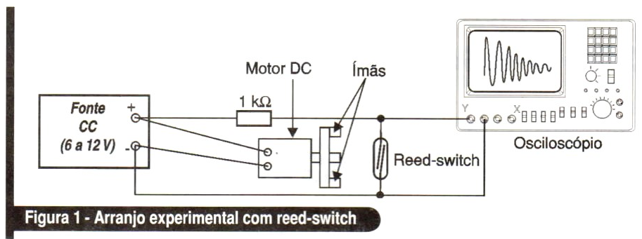 O arranjo ilustrado na figura 1 permite visualizar no osciloscópio o repique em um reed-switch, quando acionado de forma regular por ímãs presos a um motor.