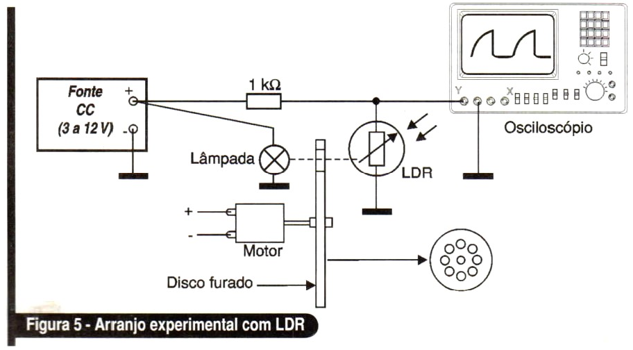 Os LDRs não são fotossensores rápidos e isso pode ser demonstrado facilmente no experimento cujo arranjo é dado na figura 5.