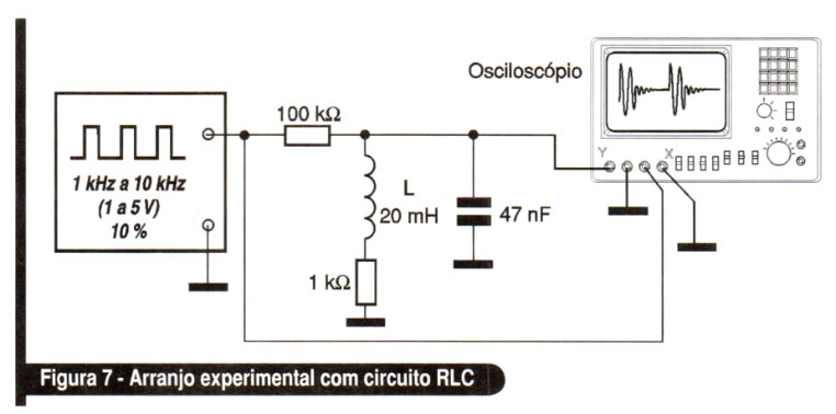 O grau de amortecimento depende de R e a frequência das oscilações de LC. Podemos visualizar esse fenômeno com o circuito exibido na figura 7.
