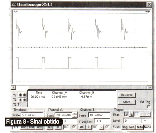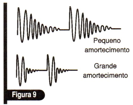 A imagem é ajustada para obter a tela mostrada na figura 8, obtida na simulação com o Electronics Workbench. Na figura 9 vemos diversos graus de amortecimento para o sinal gerado, dependendo do valor de R.