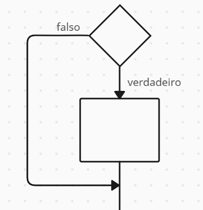 Na sequência acima, o programa faz uma avaliação, se o resultado for falso, o bloco é executado, se for verdadeiro, pula o bloco e continua a sequência abaixo. Além disso, uma avaliação pode ser feita, como a seguinte: