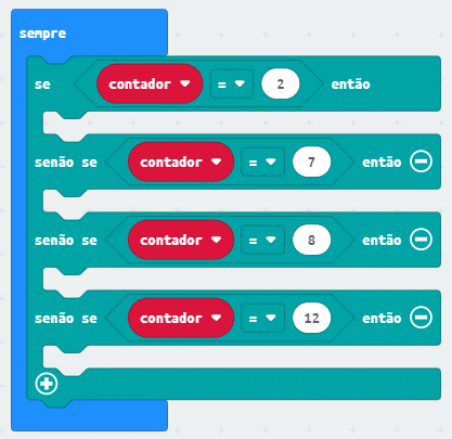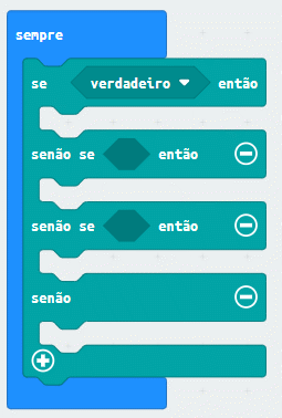 Outro tipo de sequência utilizada em microbits é realizada quando múltiplas verificações devem ser feitas conforme a figura a seguir: