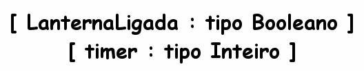 Diagramas de dados mostram as variáveis ??usadas no projeto. Por exemplo, para o projeto: “lanterna”, utilizamos 2 variáveis, uma do tipo booleana chamada: “LinternaPrendida” e outra do tipo inteiro chamada: “timer”. O diagrama de dados pode ser como o seguinte: