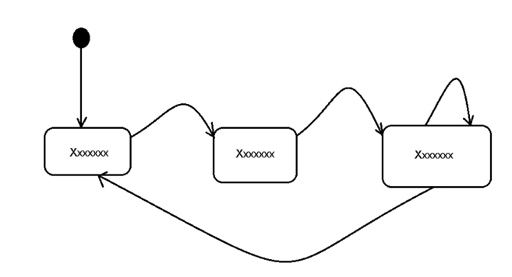 Diagramas de estado são usados ??para descrever o comportamento de um projeto. Esse diagrama pode dar ao projeto alguma inteligência ao ser capaz de programar da maneira que queremos que o projeto se comporte. O diagrama a seguir mostra um estilo de desenho para diagramas de estado: