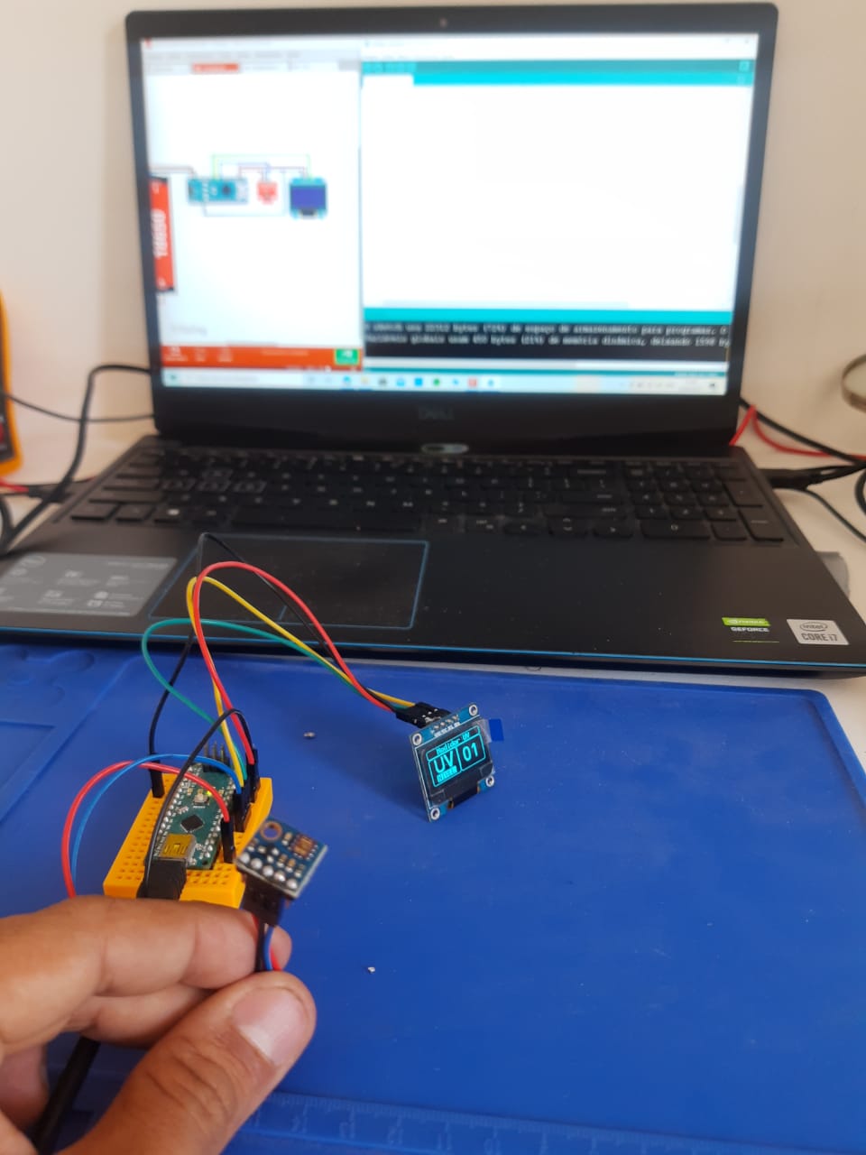 Testando o sensor e funcionando conforme esperado, nesta imagem, por motivos técnicos, o registro do teste foi feito dentro de casa, por isso o valor 01 UV, porém levei o sensor para minha janela chegando a 7UV e instalei na vela da prancha de WindSurf chegando a valores de 9 UV, ou seja, muita radiação Ultravioleta no momento da prática do esporte as 15h.