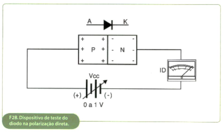 Por sua vez, o polo negativo da fonte VCC é ligado ao bloco N, que possui cargas negativas livres, pelo mesmo motivo visto acima, são repeli- das no sentido do elemento P.