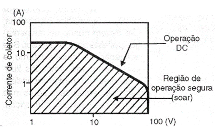 Muitos pensavam que “esses 15 A” eram de qualquer maneira esquecendo que a operação de qualquer dispositivo semicondutor, como os transistores, estava sujeita a certas limitações dadas pelo que denominamos SOA (Safe Operating Area) ou Área de Operação Segura, conforme mostra a figura 3.