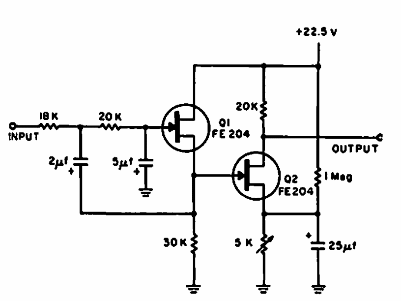 Este circuito de muito baixa frequência foi encontrado numa Electronic Design de 1964. Os transistores podem ser equivalentes modernos. O filtro é do tipo passa baixas.