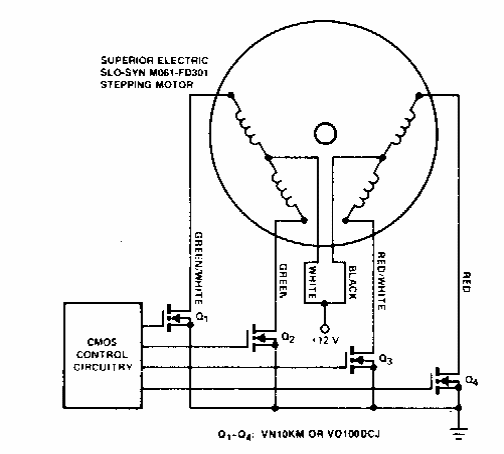 Sugerido por documentação da Siliconix dos anos 90, este circuito usa MOSFETs de potência de acordo com a corrente do motor controlado.