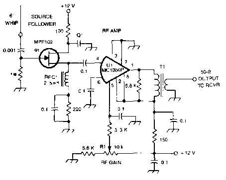 Encontrado numa documentação americana de 1992, este circuito para ondas médias e curtas usa um CI da época. Este componente é pouco comum atualmente.