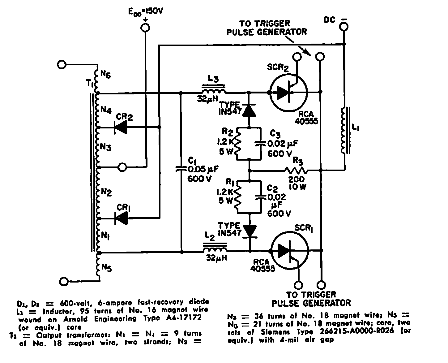 Sugerido por um manual da RCA antigo, este circuito faz uso de componentes da época. Dados para o transformador são fornecidos na documentação original dos anos 60.