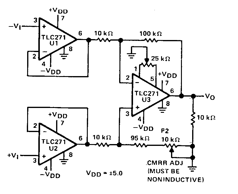 Encontrado em documentação da Texas Instruments dos anos 90, este circuito pode ser usado como shield pois sua alimentação simétrica é de 5 V. O circuito possui ajuste de offset e faixa passante de 200 kHz.