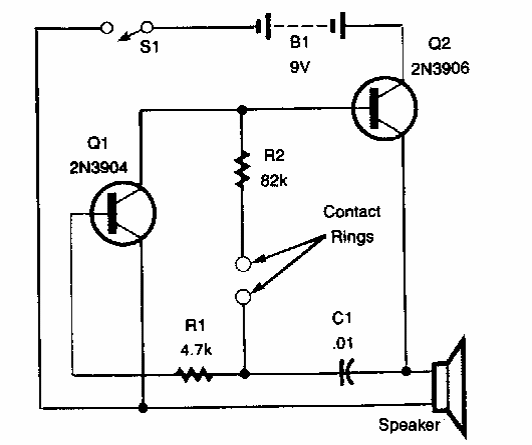 Este simples detector de mentiras foi encontrado numa Popular Electronics. Os transistores são de uso geral. O circuito se baseia na variação da frequência dos sons produzidos.