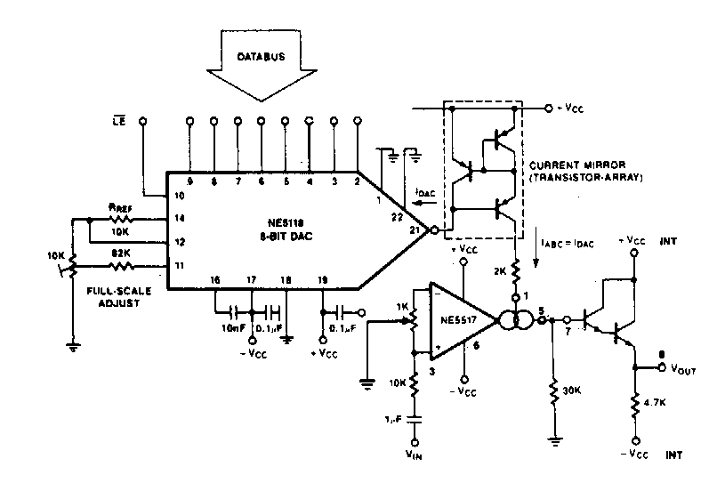 Este amplificador com ganho programado digitalmente foi obtido em documentação da Signetics dos anos 80. O circuito pode servir de base para um projeto com conversor D/A moderno, operando como shield.
