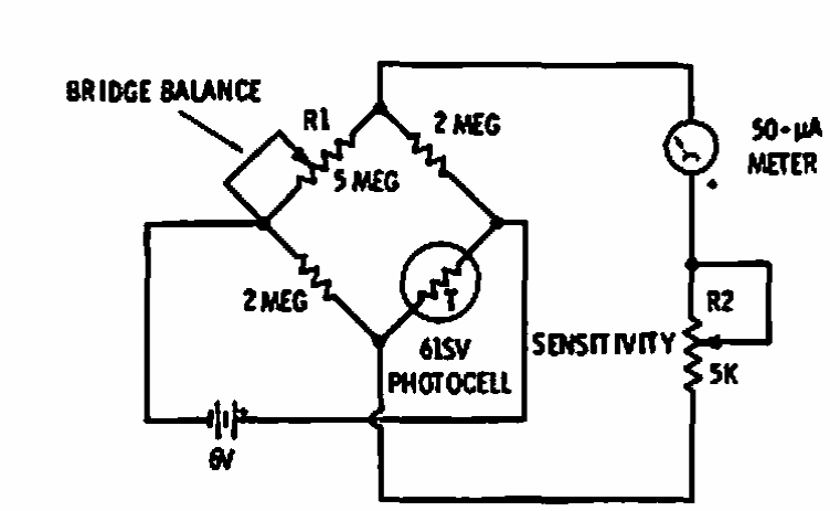 Encontrado numa documentação americana de 1968, este circuito sensoria a temperatura através de um sensor infravermelho da época. O indicador é analógico.