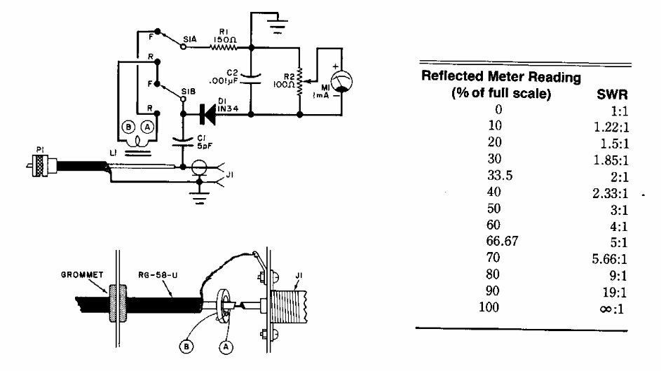 Relação de ondas estacionárias ou ROE em português e SWR em inglês é uma medida importante para se saber se toda potência de um transmissor está sendo transferida para a antena. Este circuito de uma Popular Electronics opera com transmissores para a faixa dos radioamadores.