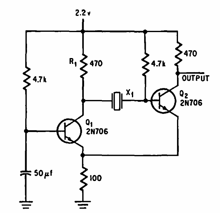 Sugerido por uma documentação americana de 1968 este circuito divide por 10 a frequência de sinais sincronizados usando para isso um cristal.