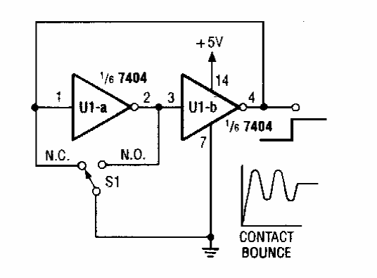 Este “debouncer” foi encontrado numa Popular Electronics, usando tecnologia TTL. Por este fato, pode ser usado com microcontroladores e em lugar da chave, podem ser usados sensores.