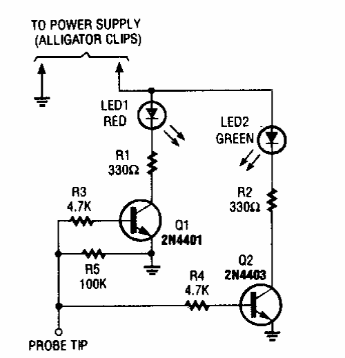 Encontrada numa Popular Electronics dos anos 90, esta ponta de prova digital usa componentes comuns. Os transistores podem ser tipos atuais de uso geral.