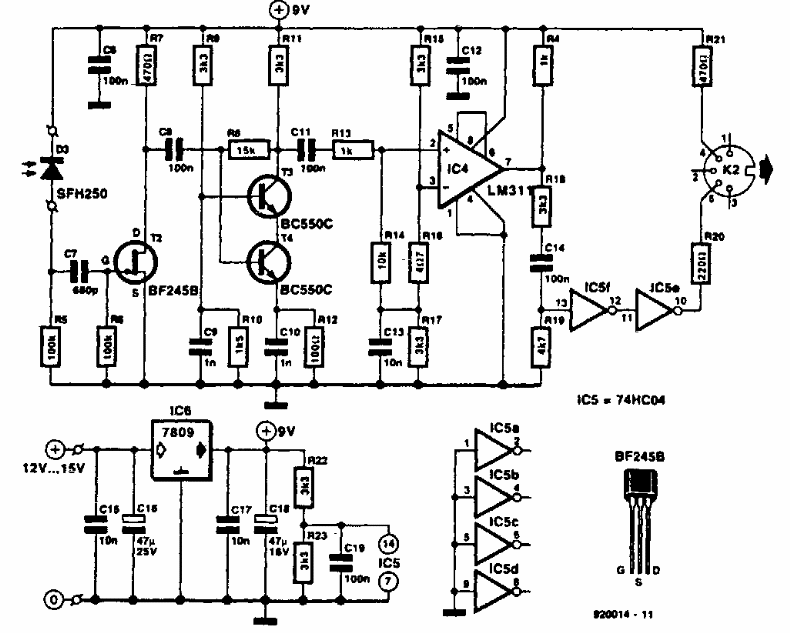 Este circuito para instrumentos musicais foi encontrado numa Elektor dos anos 90. O circuito ainda se aplica, pois os componentes usados ainda podem ser obtidos com certa facilidade.
