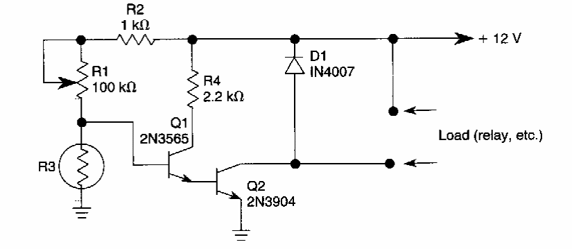 Encontrado numa documentação americana dos anos 90, este circuito faz uso de componentes comuns. A carga deve ser de acordo com a tensão de alimentação.