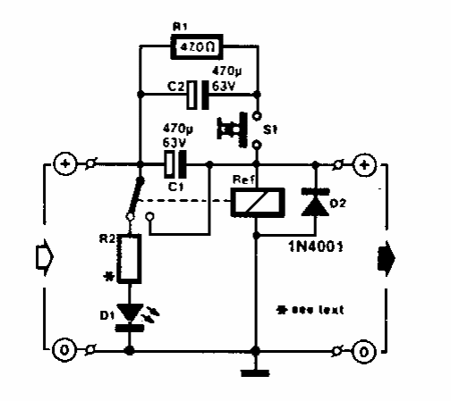 Encontrado numa Elektor dos anos 90, este circuito desativa uma fonte em caso de corrente excessiva. O relé deve ter tensão de acordo com a fonte protegida.