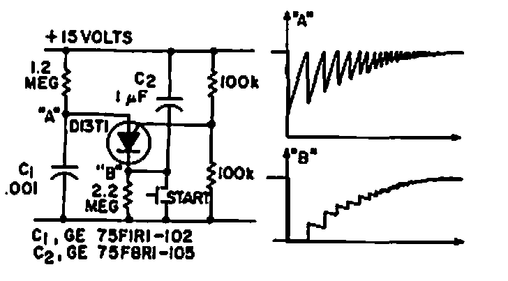 Encontrado em documentação da General Electric de 1967, este circuito usa um PUT pouco comum em nossos dias. A frequência depende de C1.