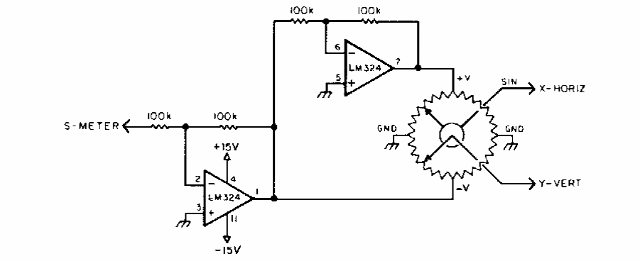 Este circuito, encontrado numa revista 73 para radioamadores, é usado em radio localização. O circuito converte padrões polares para retangulares gerando um padrão para radio localização.